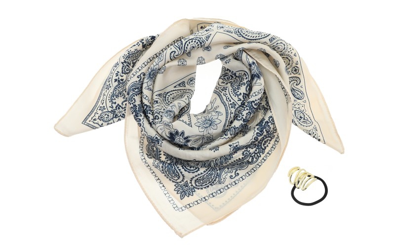 Het vierkante zomersjaaltje St. Ives is een stijlvolle en veelzijdige must?have voor iedere boetiek. Dit luchtige sjaaltje is gemaakt van hoogwaardig polyester, waardoor het zacht valt, niet snel kreukt en ideaal is voor warme zomerdagen. Dankzij het bijgeleverde elastiekje blijft de sjaal altijd mooi in model—of hij nu in het haar, om de nek of aan een tas wordt gedragen.