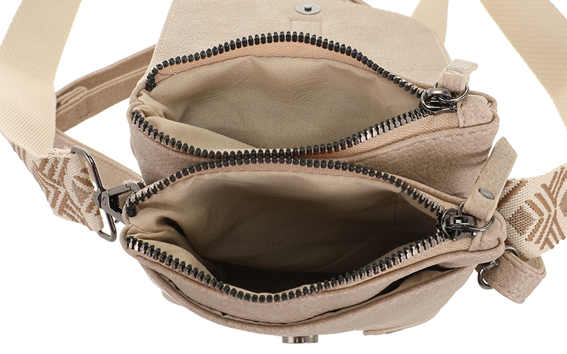 Handig Ingericht: Binnenin vind je voldoende ruimte voor je telefoon, pasjes, sleutels en andere must-haves. Alles goed beschermd onder de klep met magneetsluiting én een dubbele ritssluiting.